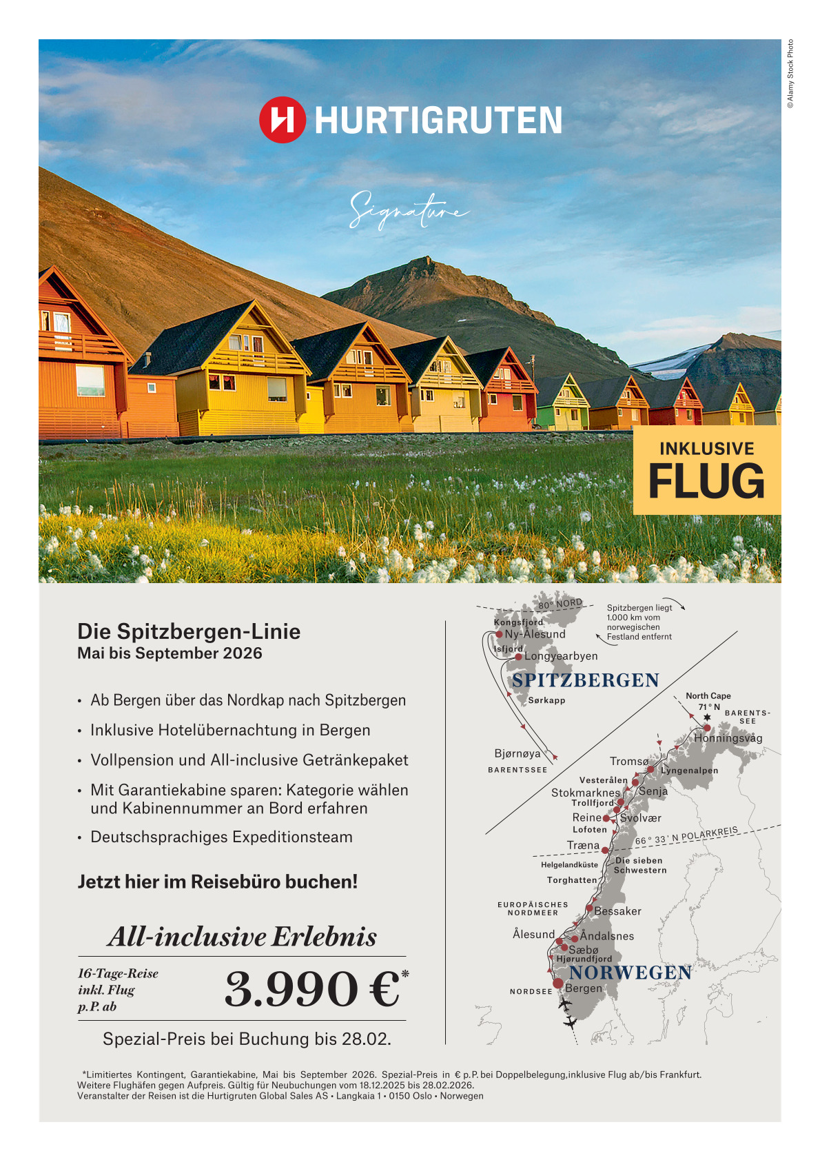 Hurtigruten „Die Spitzbergen-Linie / Mai – September 2026 / Inklusive Flug / Spezial-Preis bei Buchung bis 28.02.“ 2026