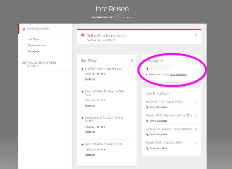 iberia buchung vervollständigen