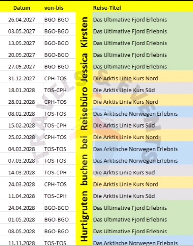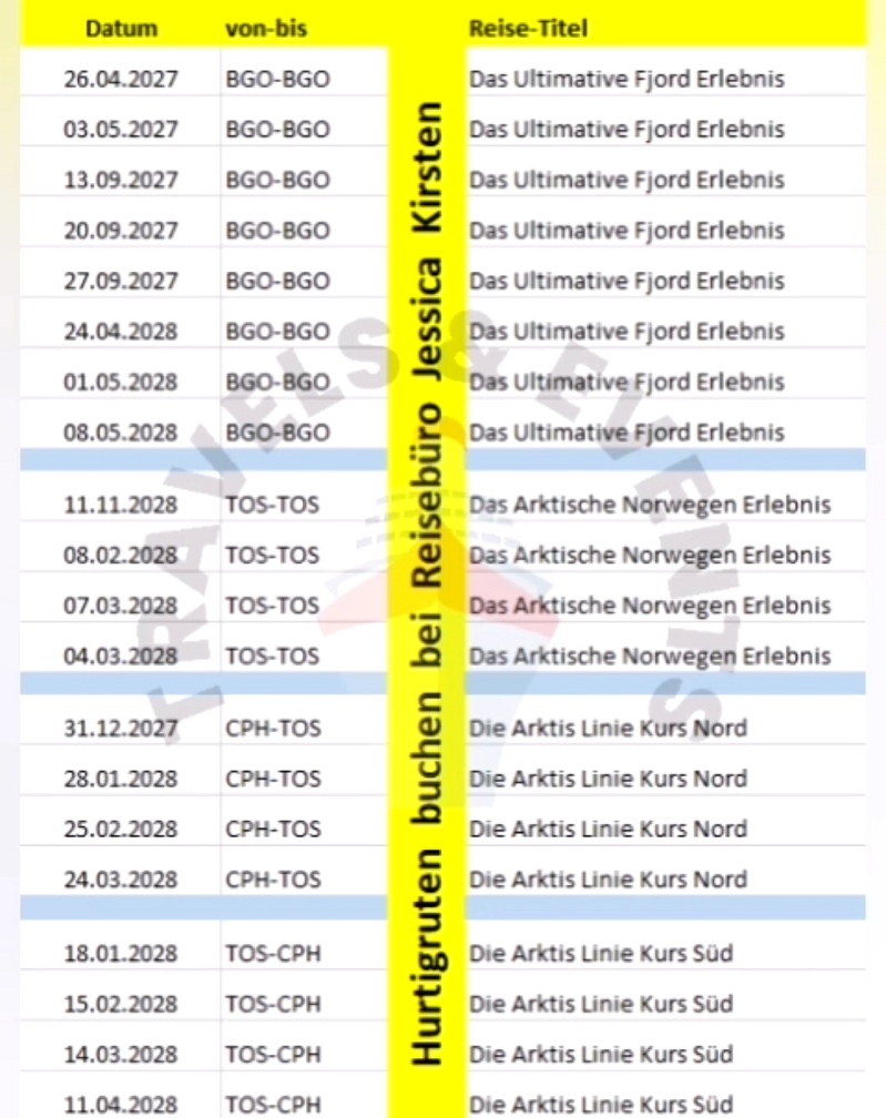 Die neuen Routen werden mit der MS Trollfjord gefahren und hier sind die Termine in der Übersicht: