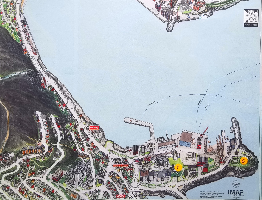 Mitten im Zentrum kann man die (ev.) Kirche und das wirklich interessante Museum besuchen, zu den Eisbären-Statuen vorm Rathaus bummeln, sich den hübsche bunten Pavillon dahinter am Hügel anschauen. Ein Stück weiter links befindet sich nun der Eisebärenklub, und kurz davor die hübsche kleine Kath. Kirche im 1. Stock, die bisher immer geöffnet war, wenn ich dort war.